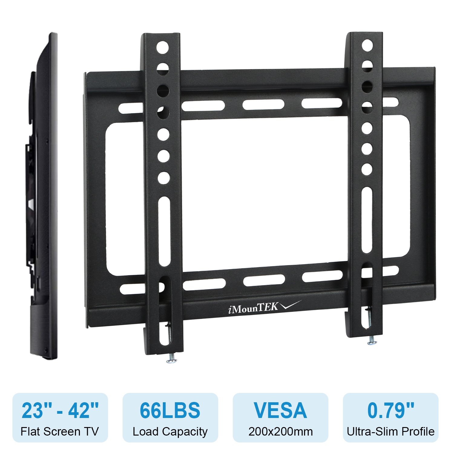 Our TV wall mount bracket is specially designed an optimal solution to save space through holding most 23"-42" LED/LCD/PLASMA flat screen TV with VESA mounting holes patterns of 75x75mm/(3"x3"), 100x100mm (4"x4"), 200x100mm (8"x4") and 200x200mm (8"x8") on the wall. Made from heavy-duty thickened SPCC steel materials, it is sturdy, durable and can support weight up to 66lbs. And at the bottom of the two brackets is separately equipped with a safety screw to ensure the TV is securely connected to the wall mounting plate.